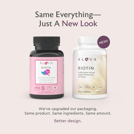 90 Capsules of Alaya Naturals Biotin 10,000mcg for Healthy Hair, Skin, and Nails