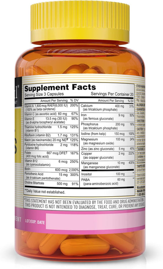 MASON NATURAL Body, Hair, Skin & Nails Support Supplement with Vitamins A, C, E & Biotin, 60 Capsules