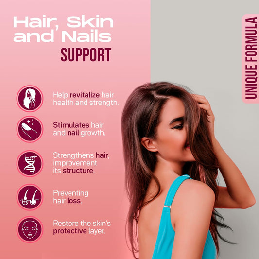 Hair Skin Nail Capsules with Biotin, Vitamin D, B-12, Folic Acid | Hair & Skin Vitamins - 30 Count Supplement