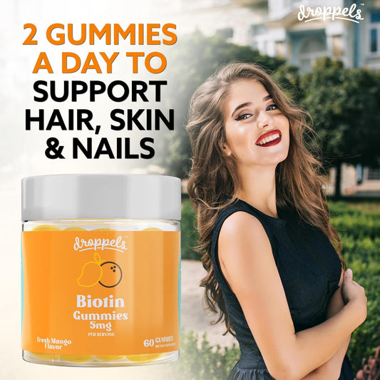 Vegan Biotin Gummies for Hair Growth and Healthy Nails - Droppels 5,000mcg Biotin Gummies, Non-GMO, Pectin-Based - 60 Count