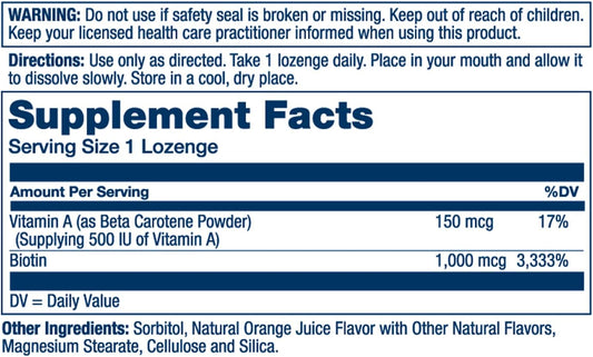Solaray High Potency Biotin Lozenges with Natural Orange Juice Flavor - 1000 mcg for Hair, Skin, and Nails Support - 100 CountVendor:SOLARAYRegular price $100.42 AUDRegular priceUnit price / per-