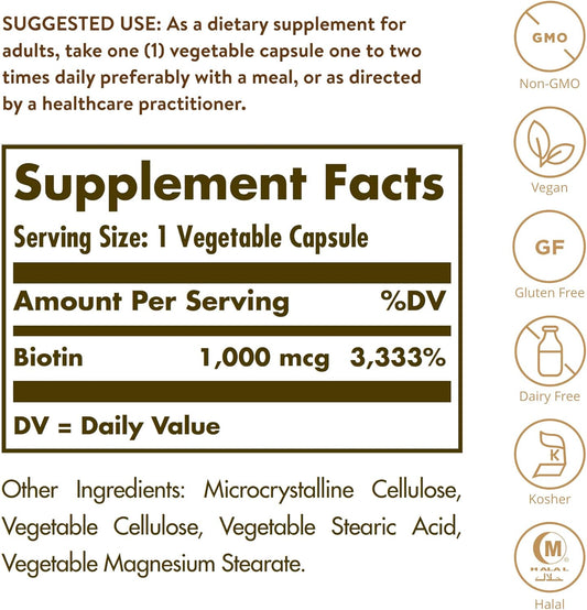 Solgar Biotin 1000 mcg Capsules - Promotes Healthy Skin, Nails & Hair - Energy Metabolism Support - Enhanced Potency - Non-GMO, Vegan, Gluten Free - 250 ServingsVendor:SOLGARRegular price $129.30 AUDRegular priceUnit price / per-