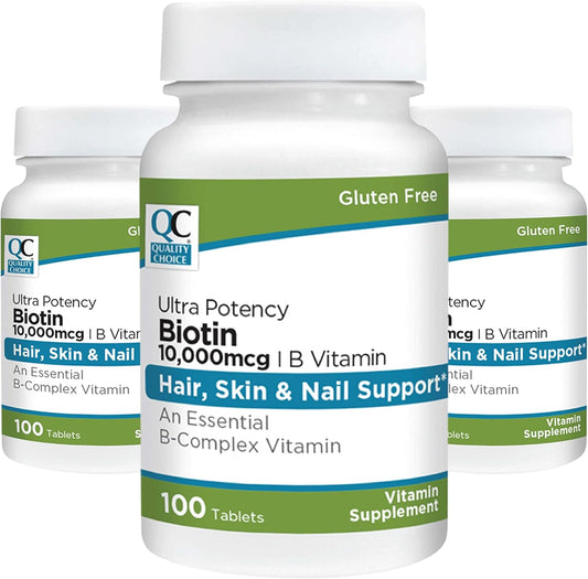 Ultra Potency Biotin 10,000 mcg Tablets - 100 Count for Nail, Skin, & Hair Support by Quality Choice