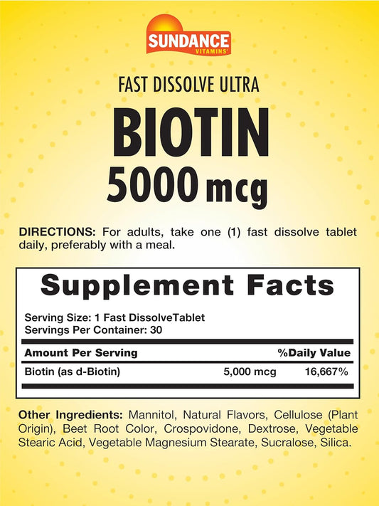 Natural Berry Flavored Biotin 5000mcg Fast Dissolve Tablets - 30 Count, Vegetarian, Non-GMO, Gluten Free - Essential B-Vitamin Supplement