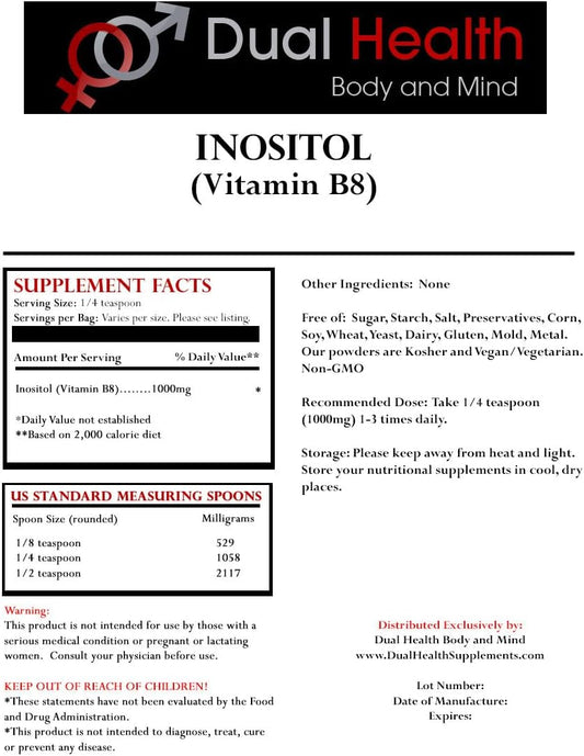 Pure Inositol Powder Supplement for Body & Mind Health - 4 oz (1000mg per Serving) - Vitamin B8 Antioxidants - Bulk Dietary SupplementVendor:Dual Health Body & MindRegular price $114.74 AUDRegular priceUnit price / per-
