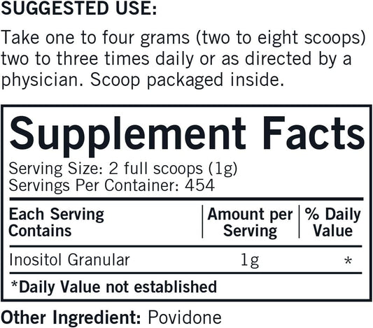 Myo-Inositol Powder - Promotes Healthy Mood, Emotional Wellness, and Ovarian Function - Energy Boost and Sleep Support - 1lb (454g)