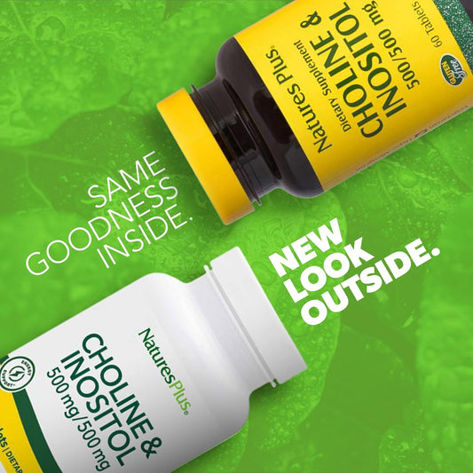 Natures Plus Choline & Inositol 500mg Vegetarian Tablets for Nervous System & Liver Health - Gluten-Free - 60 Servings