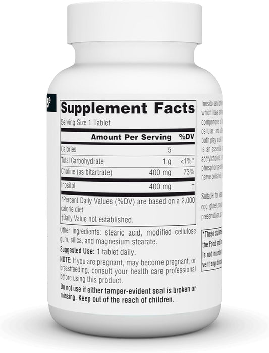 Supports Healthy Nerve Function: Source Naturals Inositol & Choline 800mg - 50 Tablets