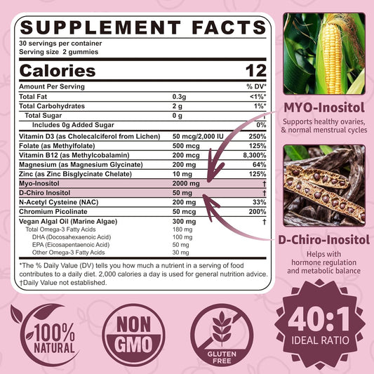 2-Pack Sugar-Free Nevis Myo-Inositol & D-Chiro Inositol Gummies + Multivitamin for Women Gummies