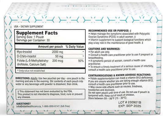 Ovofolic Inositol Supplement with Myo-Inositol, D-Chiro Inositol, and Active Folate - 30 Sachets