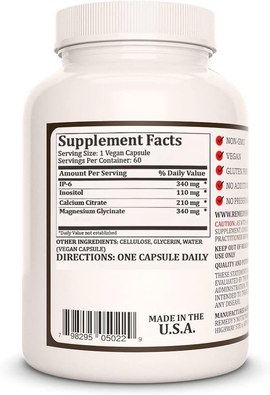 Remedy Nutrition IP6 Supplement with Inositol, Calcium, Magnesium - 1,000mg | 60 Day Supply | Non-GMO, Gluten-Free, Dairy-Free