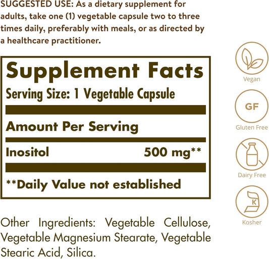 Solgar Inositol Vegetable Capsules - 500 mg, 100 Count - Natural Mood Support Supplement