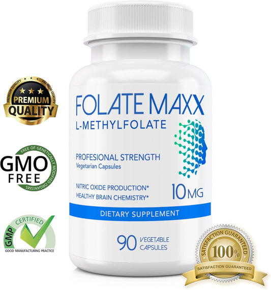 High Potency FolateMaxx L-Methylfolate Capsules 10mg - 90 Count | Non-GMO Active Folate Supplement with 5-MTHF