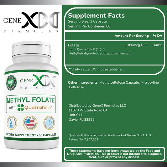 Genex Formulas Methyl Folate with Quatrefolic 1360 mcg DFE - Bio-Active 5-Methyltetrahydrofolate - Vegan, Gluten Free, Non-GMO - 60 CapsulesVendor:Genex FormulasRegular price $92.51 AUDRegular priceUnit price / per-