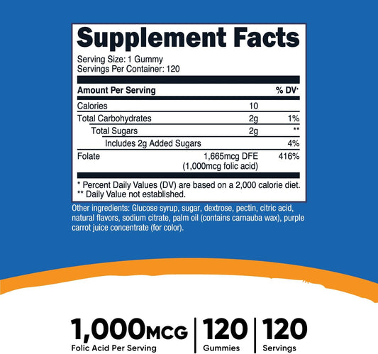 Vegetarian Folic Acid Gummies - 120 Gummies, 1 mg Per Serving - Men & Women SupplementVendor:NutricostRegular price $104.77 AUDRegular priceUnit price / per