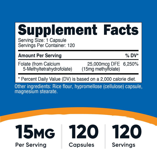 120 Capsules of Nutricost L-Methylfolate 15mg - Vegan, Non-GMO, Gluten Free (5-MTHF)Vendor:NutricostRegular price $119.59 AUDRegular priceUnit price / per-