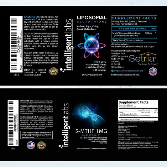 500MG Liposomal Glutathione & 1MG 5-MTHF Methylfolate Bundle for Antioxidant & Methylation SupportVendor:Intelligent LabsRegular price $182.05 AUDRegular priceUnit price / per-