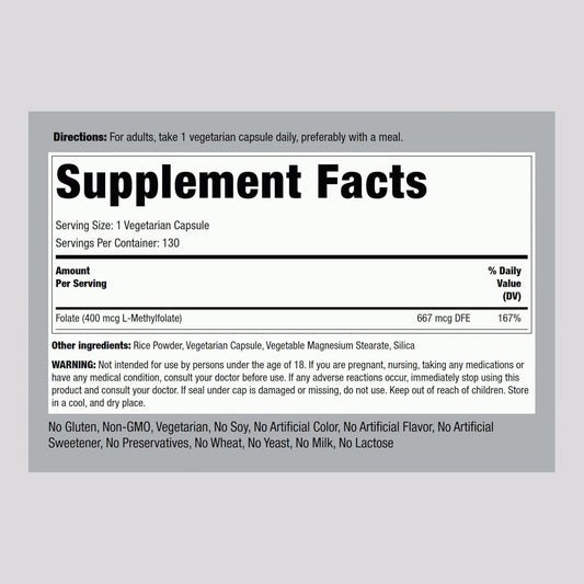 Vegan L MethylFolate Supplement | 400 mcg | 130 Capsules | Vegetarian | Non-GMO, Gluten FreeVendor:My StoreRegular price $107.32 AUDRegular priceUnit price / per-