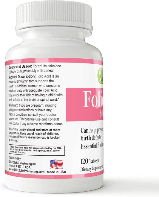 120 Tablets of J-Bio Folic Acid 800mcg for Women's Daily Health and Prenatal Care