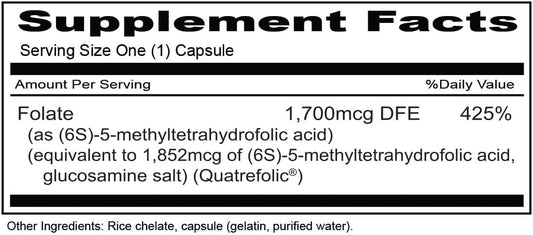 Bioavailable Methyl Folate Supplement with Quatrefolic - 800 mcg - Vegan, Non-GMO, Gluten-Free - 120 Veg Caps