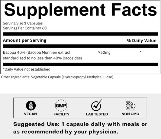 750mg Bacopa Monnieri Capsules - 40% Bacosides - Herbal Supplement - 60 Capsules by FOLIUS LABSVendor:FOLIUS LABSRegular price $109.71 AUDRegular priceUnit price / per-