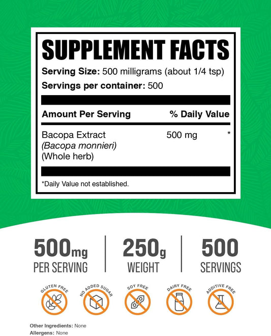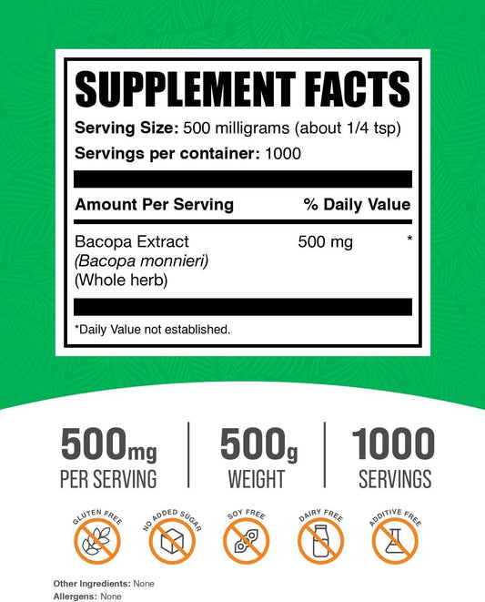 BulkSupplements.com Bacopa Monnieri Extract Powder - 500mg per Serving, 500g (1.1 lbs) - Vegan & Gluten Free Bacopa SupplementVendor:BulkSupplementsRegular price $199.03 AUDRegular priceUnit price / per-