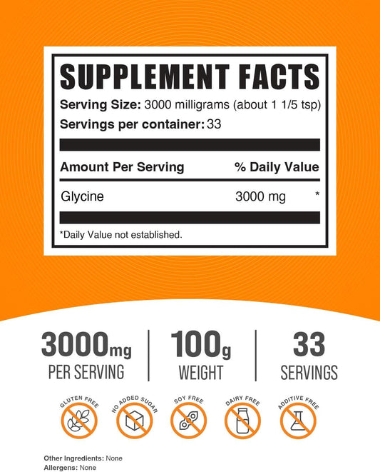 BulkSupplements.com 100g L-Glycine Powder - Pure Glycine Amino Acid Supplement, Gluten-Free, 3000mg per ServingVendor:BulkSupplementsRegular price $104.80 AUDRegular priceUnit price / per-