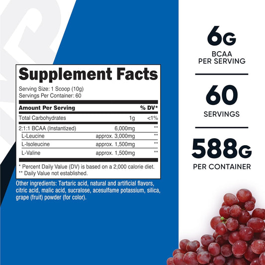 Nutricost Grape BCAA Powder - 60 Servings, Vegetarian, Non-GMO, Gluten Free, 2:1:1 RatioVendor:NutricostRegular price $139.35 AUDRegular priceUnit price / per-