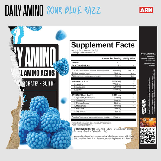 ARN Daily Amino: Essential Amino Acids Supplement (Sour Blue Razz, 30 Servings) by Arms Race NutritionVendor:Arms Race NutritionRegular price $173.78 AUDRegular priceUnit price / per
