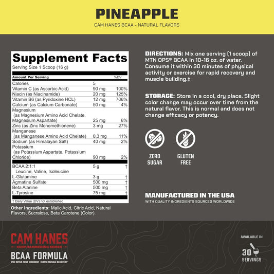 MTN OPS Cameron Hanes Keep Hammering BCAA Powder - 30 Servings, 2:1:1 Amino Acids for Muscle Recovery & Repair, Zero Sugar & Gluten FreeVendor:MTN OPSRegular price $173.69 AUDRegular priceUnit price / per-