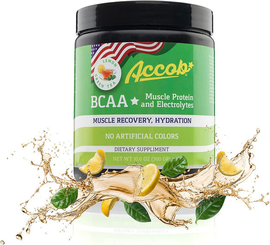 ACCOB BCAA Powder Lemon Green Tea for Muscle Recovery & Energy, 7.2g BCCAs + Electrolytes, Pre or Post Workout Drink with Collagen Peptides - 30 ServingsVendor:ACCOBRegular price $133.01 AUDRegular priceUnit price / per-