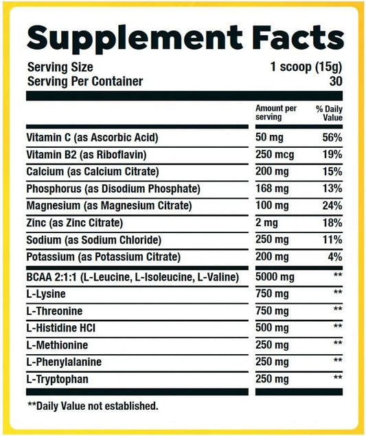 ES FIT Amino Powder with Electrolytes - BCAA 2:1:1 Ratio, Amino Acids, Lemon Ice Flavor - Pre and Post Workout Supplement, 30 ServingsVendor:ES FITRegular price $185.28 AUDRegular priceUnit price / per-