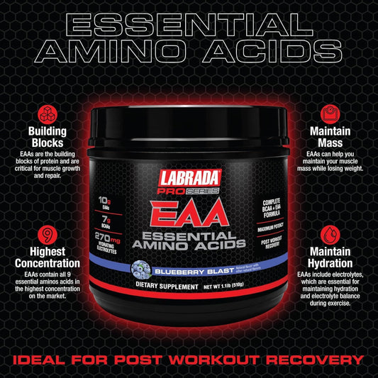 Labrada Pro Series EAA Hydrating Formula with 10g BCAAs, 7g EAAs, 270mg Electrolytes - Blueberry BlastVendor:LabradaRegular price $144.39 AUDRegular priceUnit price / per-