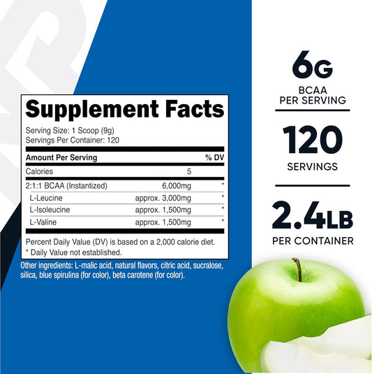 Nutricost Green Apple BCAA Powder - 120 Servings, 2:1:1 RatioVendor:NutricostRegular price $171.39 AUDRegular priceUnit price / per-