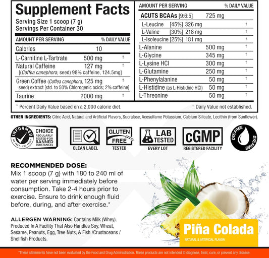 ALLMAX Nutrition AMINOCUTS (ACUTS) Energy Drink - Pina Colada Flavor with Taurine, L-Carnitine, Green Coffee Bean Extract - 30 ServingsVendor:ALLMAX NutritionRegular price $124.63 AUDRegular priceUnit price / per-