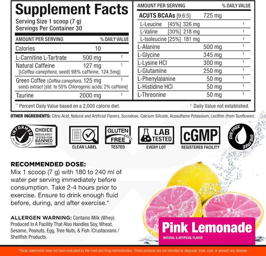 AMINOCUTS Energy Drink with Taurine, L-Carnitine, Green Coffee Bean Extract - Pink Lemonade, 30 ServingsVendor:ALLMAX NutritionRegular price $124.63 AUDRegular priceUnit price / per-