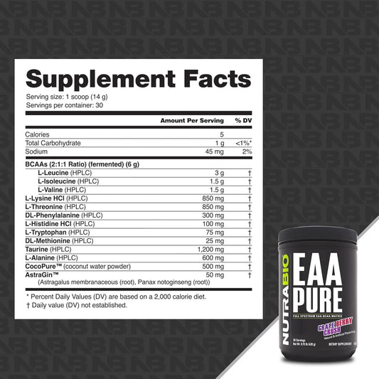 NutraBio EAA Pure: Grape Berry Crush, 30 Servings, 9 Amino Acids for Muscle Repair & Recovery - Pre/Post Workout & All Day RecoveryVendor:NutraBioRegular price $144.39 AUDRegular priceUnit price / per-
