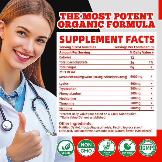 Strawberry Flavored Bettervits Nutrition EAA Gummies - 120 Gummies, 9000 mg Essential Amino Acids - Non-GMO, Gluten Free, VegetarianVendor:Bettervits NutritionRegular price $144.39 AUDRegular priceUnit price / per-