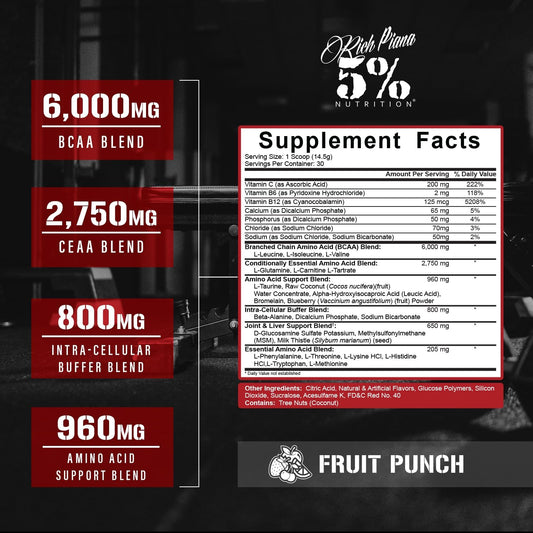 5% Nutrition Rich Piana AllDayYouMay BCAA Powder 15.3 oz - Fruit Punch Flavor - Intra & Post Workout Amino Acids for Muscle Recovery & Hydration