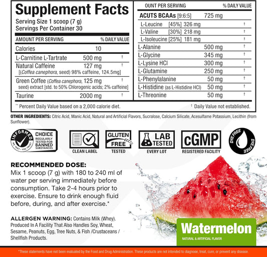 ALLMAX Nutrition AMINOCUTS Energy Drink with Taurine, L-Carnitine, Green Coffee Bean Extract - Watermelon, 30 Servings