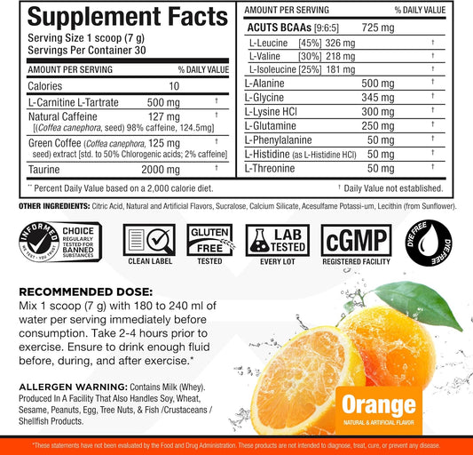 ALLMAX Nutrition AMINOCUTS Energy Drink with Taurine, L-Carnitine, Green Coffee Extract - Orange Flavor, 30 Servings