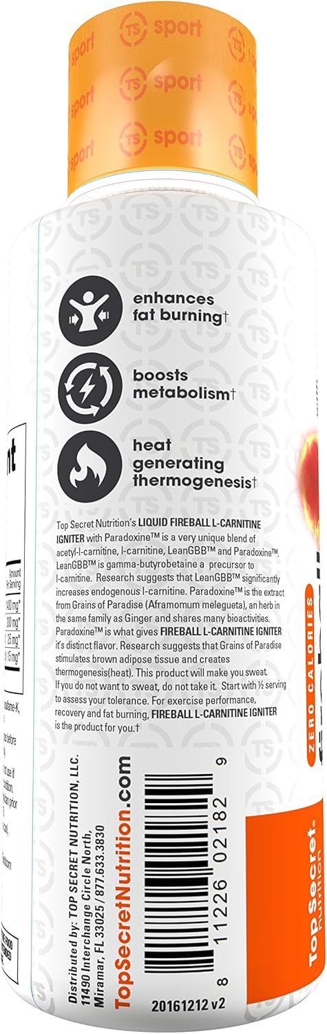Fireball L-Carnitine Liquid with Paradoxine and Cherry Flavor - Top Secret Nutrition - 16 Ounce Bottle