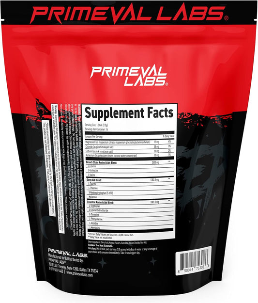 Primeval Labs EAA Max Sleep Stick Packs - Post Workout Recovery with BCAAs, EAAs, Electrolytes - Hydration & Performance Support - Keto Friendly - 16 Servings (Pink Lemonade)
