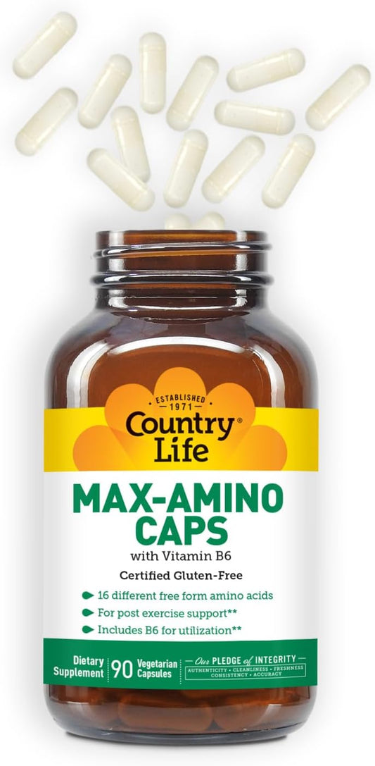 Certified Gluten Free Country Life Maxi-Amino with 16 Free Form Amino Acids - 90 Vegetarian Capsules