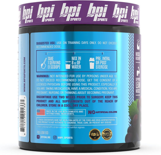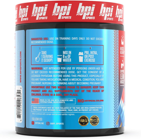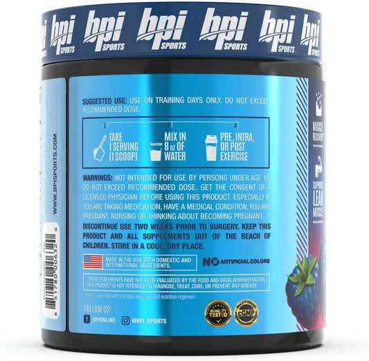 BPI Sports BEST BCAA Powder Post Workout Drink - Blue Raspberry Flavor, 30 Servings for Hydration & Recovery in Men & Women