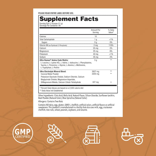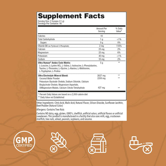Ultra Human Amino Code: Fast Hydration Workout Recovery Drink - Sour Candy Flavor, Clean Formula with Essential Amino Acids, BCAAs, and Coconut Water Electrolytes - 40 Servings