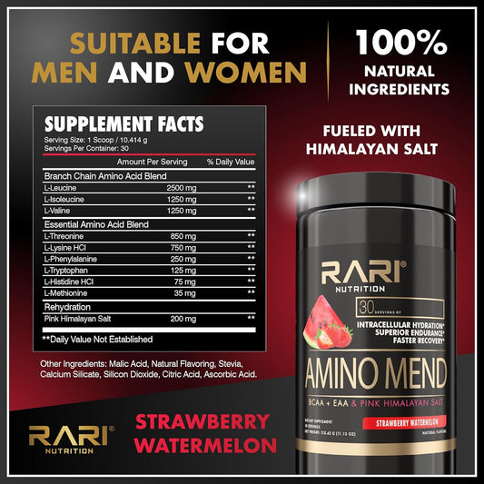 RARI Nutrition Amino Mend Recovery Drink - Strawberry Watermelon, 30 Servings, 5000mg BCAAs, 2085mg EAAs