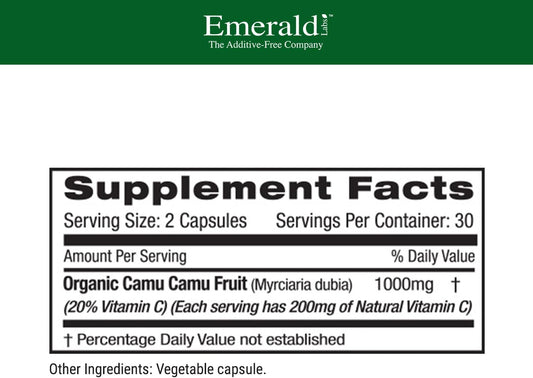 Emerald Labs Camu Camu Supplement - Plant-Based Vitamin C with Bioflavonoids, Amino Acids, B Vitamins - Gluten-Free, Vegan - 60 Veg CapsVendor:Emerald LaboratoriesRegular price $114.68 AUDRegular priceUnit price / per-