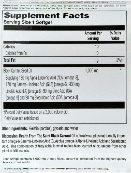 Black Currant Dietary Supplement, 500mg, 90 Soft Gels by Health From The SunVendor:Health From The SunRegular price $143.90 AUDRegular priceUnit price / per-