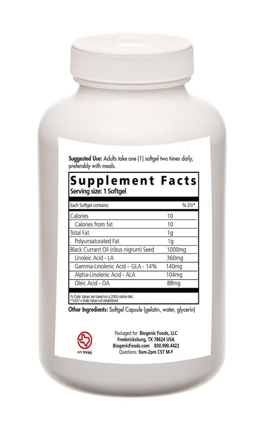 Biogenic Foods Black Currant Seed Oil - Rich in Essential Fatty Acids, 140 mg GLA, 1,000 mg Natural SourceVendor:Biogenic FoodsRegular price $117.22 AUDRegular priceUnit price / per-